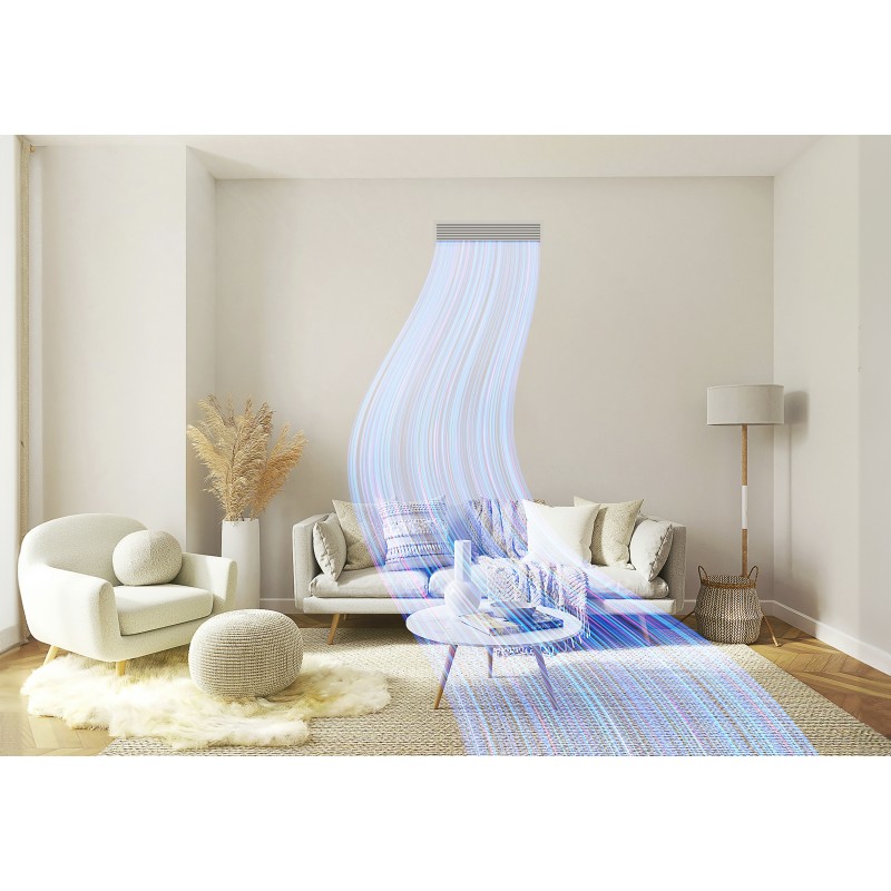 • Diseño Ultra Compacto: La unidad interior presenta una altura reducida de solo 248 mm, facilitando su instalación en falsos techos con espacio limitado.