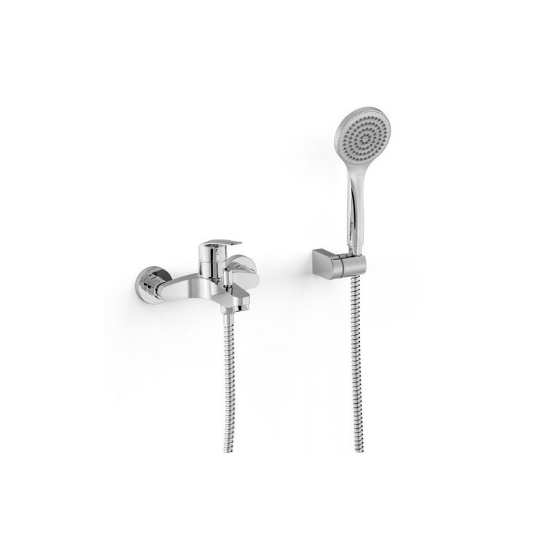 Monomando mural para bañera y ducha TRES 21617010. Incluye ducha de mano anticalcárea y flexo metálico.