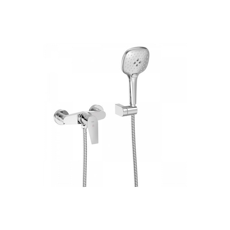 Monomando mural para ducha TRES. Diseño compacto con dimensiones 120x120mm. Acabado cromo de alta calidad.