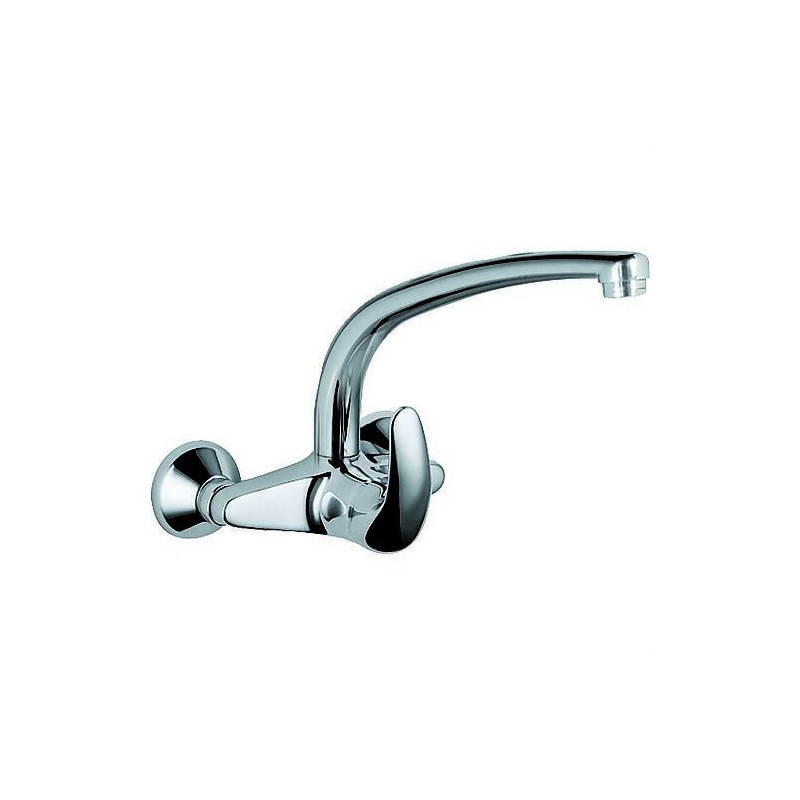 Grifo monomando fregadero de cocina para instalación a pared MONOTRES 2000. Incluye caño fundido (curvo) con acabado cromo y maneta.