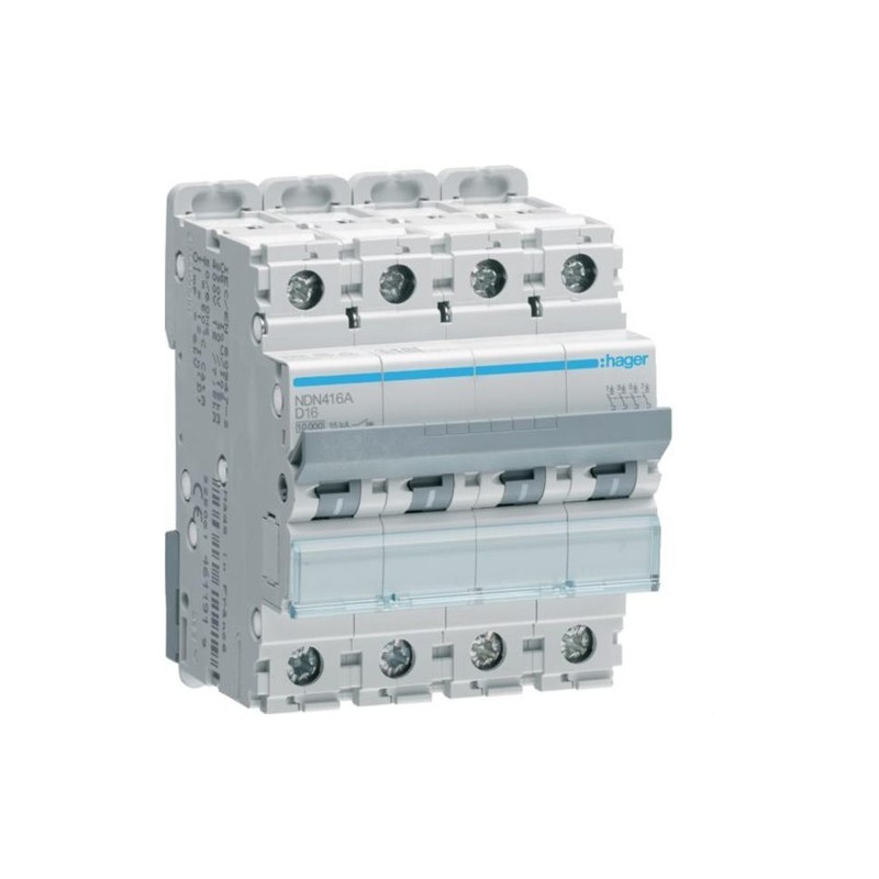 Interruptor automático magnetotérmico NDN 4P curva D 10kA Hager - 16A