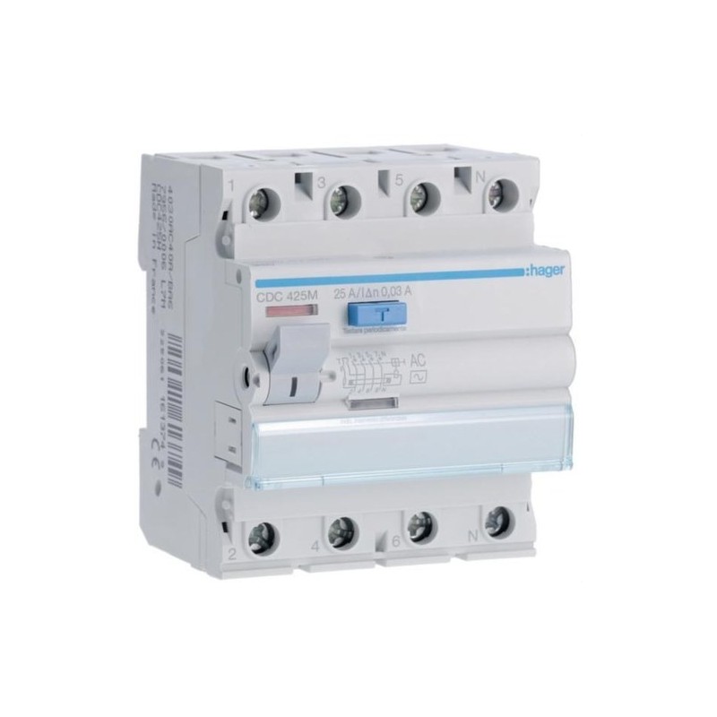 Interruptor diferencial 4P, 30mA, tipo AC. Protección en circuitos trifásicos.