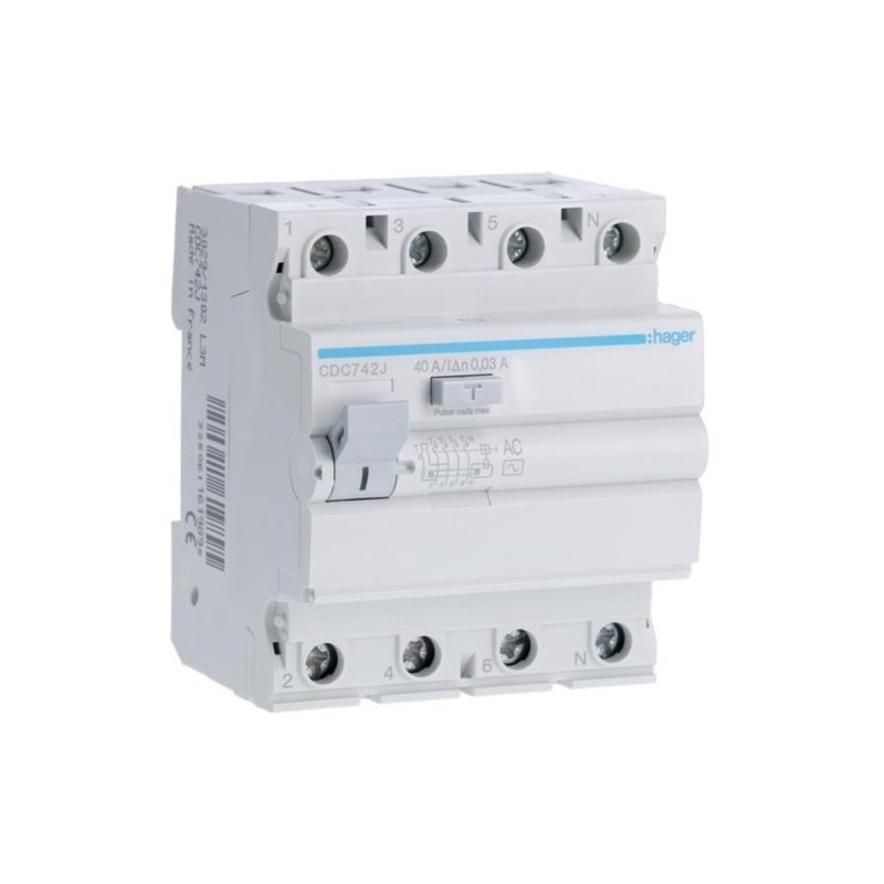 Interruptor diferencial 4P, 30mA, tipo AC. Protección en circuitos trifásicos.
