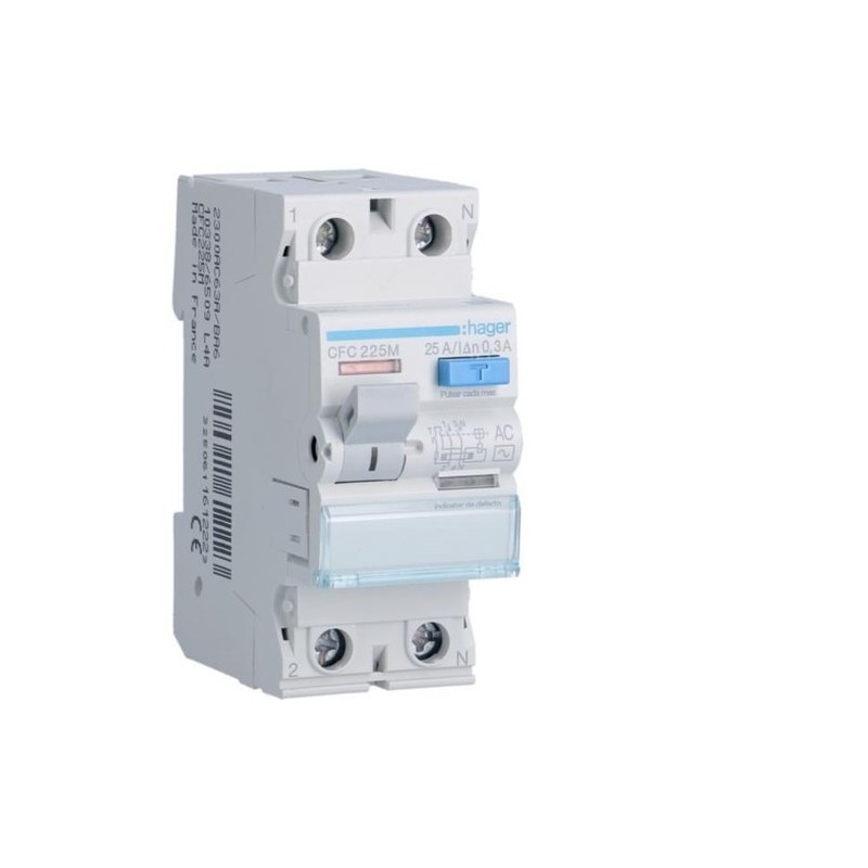 Interruptor diferencial 2P, 300mA, tipo AC. Protección en circuitos monofásicos.