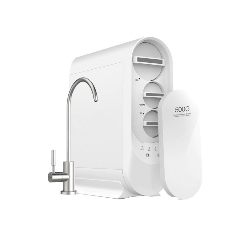 Equipo de ósmosis Genius D500 de flujo directo (sin depósito). Alta producción y LEDs indicativos del estado de los cartuchos.