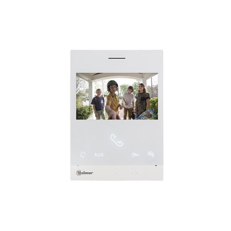 Monitor manos libres G2+ con pantalla de 4.3", pulsadores capacitivos, comunicaciones secretas y funciones de vídeo-espía, autoencendido e intercomunicación interna.