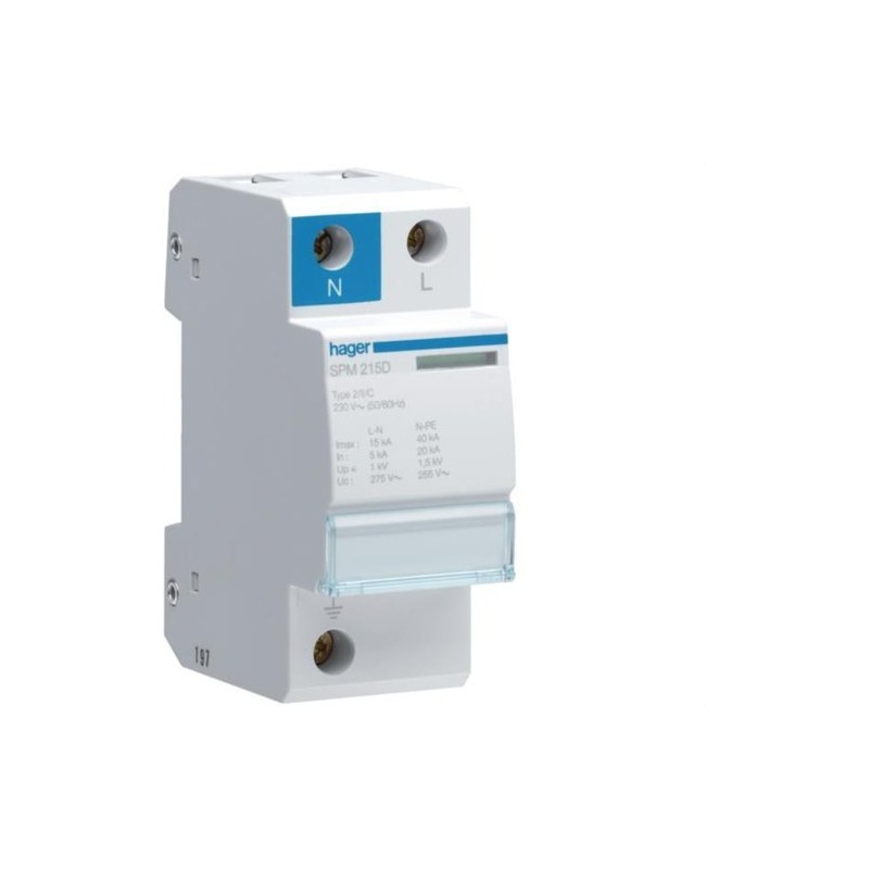 Limitador de sobretensiones monobloc SPM 1P+N 15kA clase II Hager
