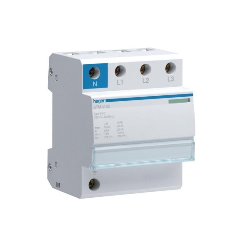 Limitador de sobretensiones monobloc SPM 3P+N 15kA clase II Hager